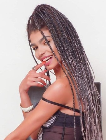 Haare:wechselnd, rückenlang, glatt