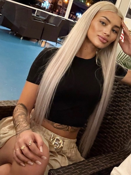 Haare:blond, rückenlang, glatt