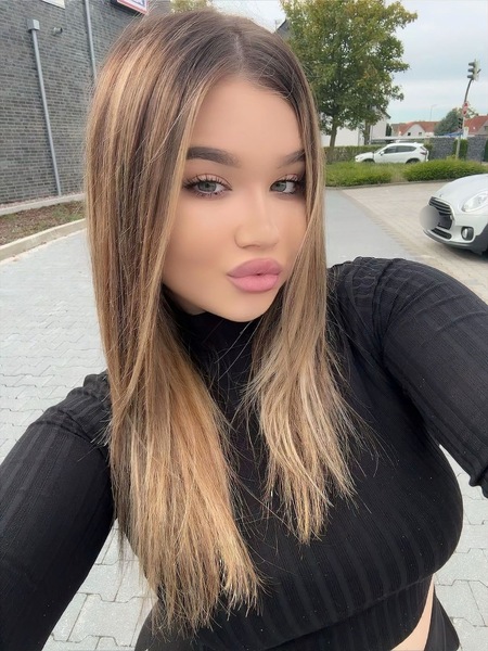 Haare:blond, rückenlang, glatt