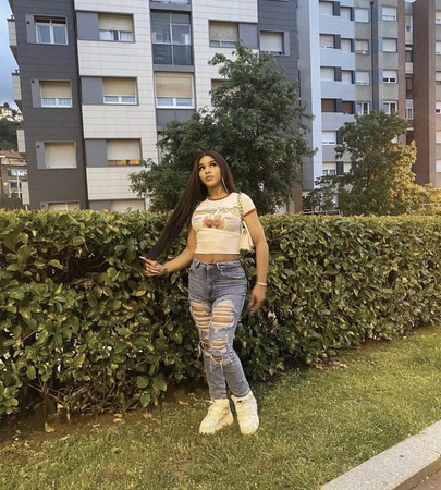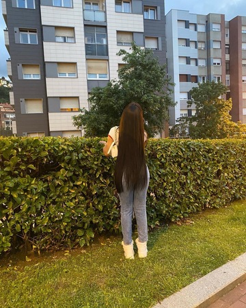 Haare:dunkelbraun, rückenlang, glatt
