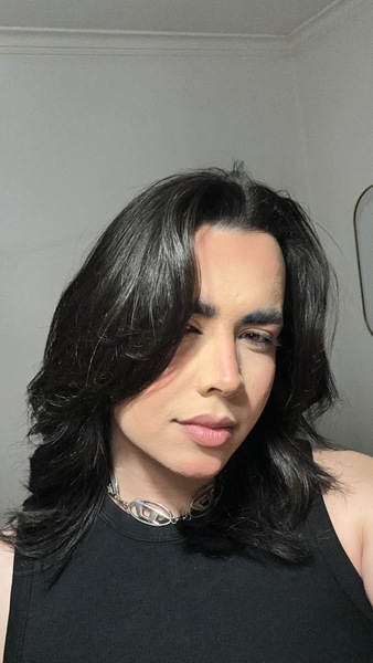 | Haare: | schwarz, schulterlang, glatt |