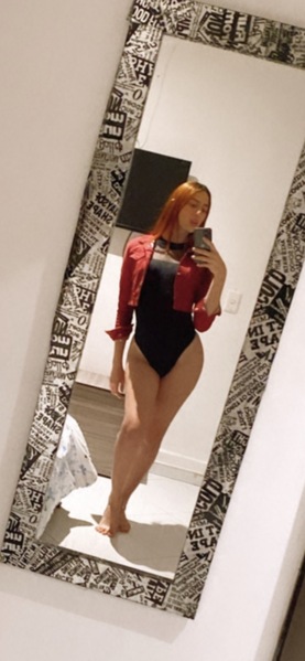 Haare:rot, rückenlang, glatt